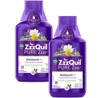 Vicks Zzzquil Pure Zzzs Liquid Melatonin Chamomile And Lavender 8 Fl Oz 2 Pk Sam S Club